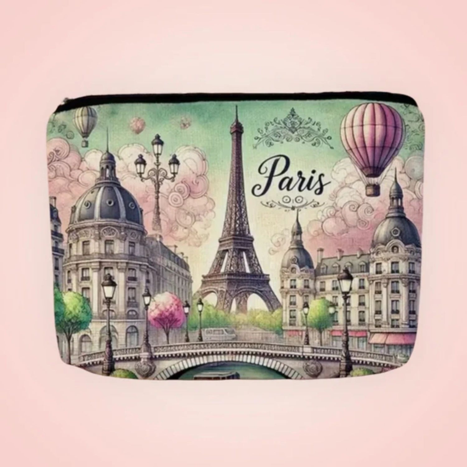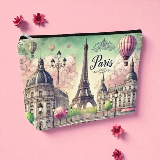 Paris Eiffel Tower Hot Air Balloon Cosmetic Bag – 9x7 Travel Pouch