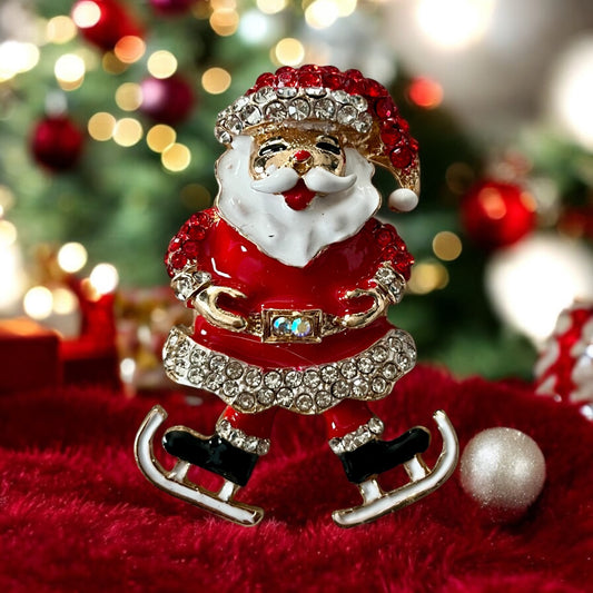 Charming Santa & Skate Shoes Brooch Pin. Red, Purple or Green