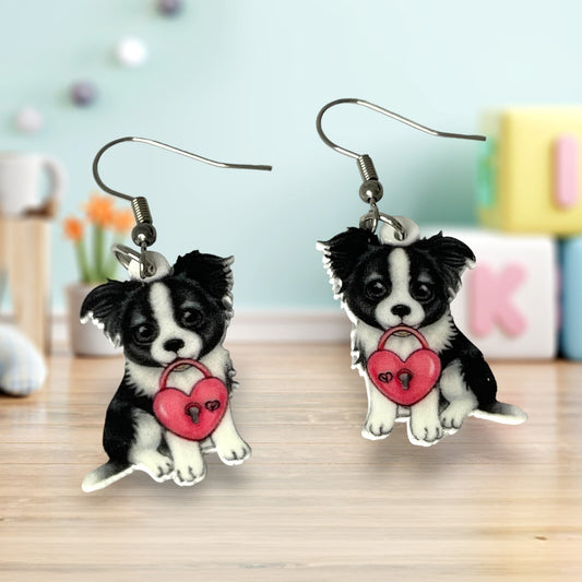 Adorable Heart Border Collie Dog Acrylic Dangle Earrings