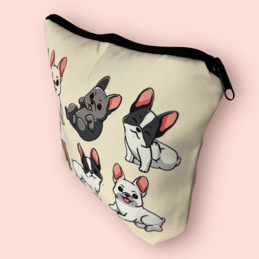 Cheerful Frenchie Bulldog Makeup Bag, Cute Dog Cosmetic Travel Toiletry Zipper Pouch Gift