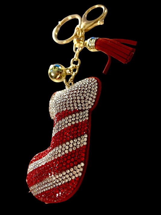 Cheerful Christmas Stocking Keychain - Festive Holiday Accessory - Lobster Clasp, Metal, Fabric - Cute Stocking Charm for Keys or Backpack