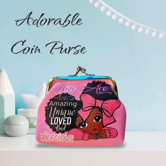 Adorable Motivational Mini Coin Wallet with Glam Black Girl Pattern for Girls