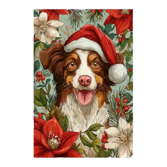 Christmas Brown Border Collie Garden Flag 12x18 – Santa Hat Dog Holiday Outdoor Yard Decor