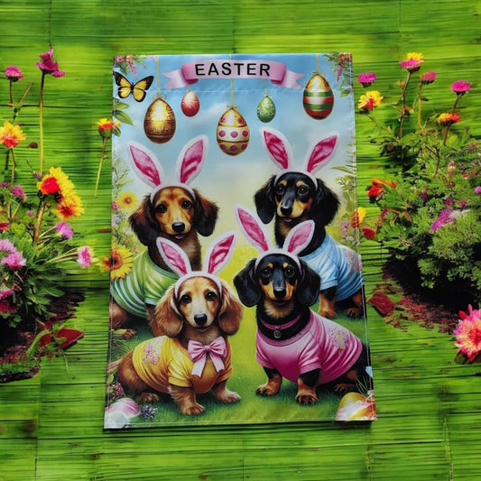 Easter Joy! Adorable Dachshund Garden Flag – 12x18 Inches of Spring Cheer