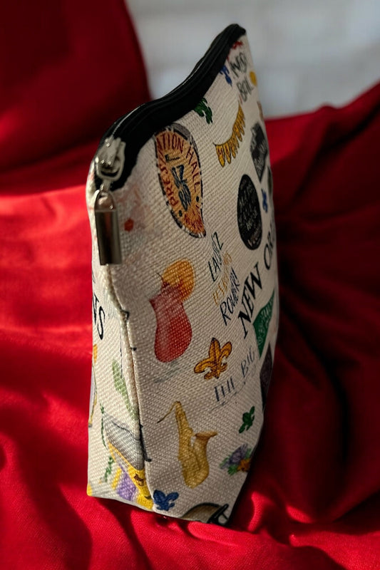 Chic New Orleans Themed Cosmetic Zipper Pouch Bag - Perfect for Travel and Mardi Gras