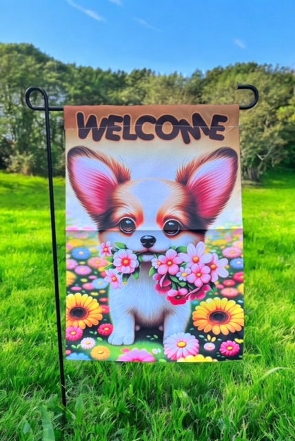 Cute Chihuahua Floral Welcome Garden Yard Flag, Double-Sided Pet Dog Flag, 12x18", Festive Home Decor