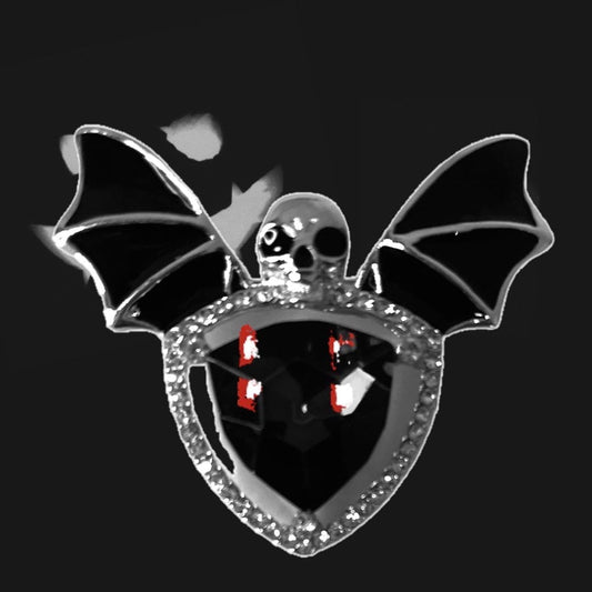 Chic Skull Bat Brooch Pin Necklace - Faux Crystal Inlay, Delicate Punk Style, Gothic Halloween Jewelry