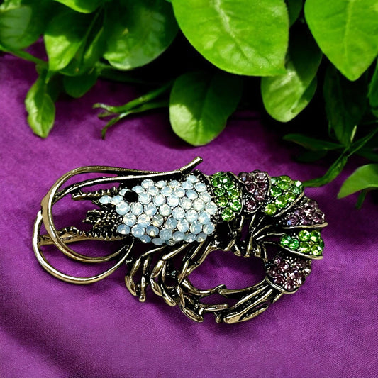 Discover a Chic, Vintage-Inspired Rhinestone Crayfish or Crawfish Brooch - Perfect for Mardi Gras!