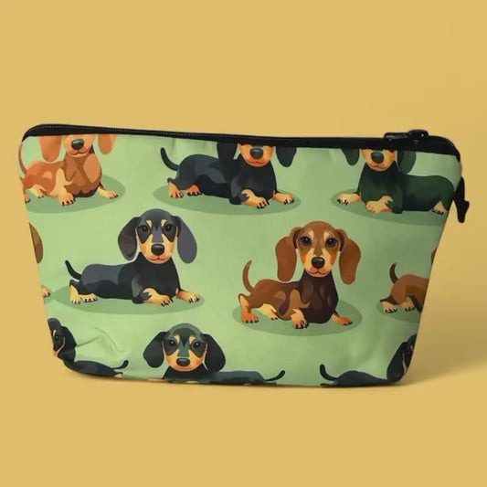 Dachshund Cosmetic Bag with Cute Doxie Dog Print Design, Lightweight and Secure Zipper Closure