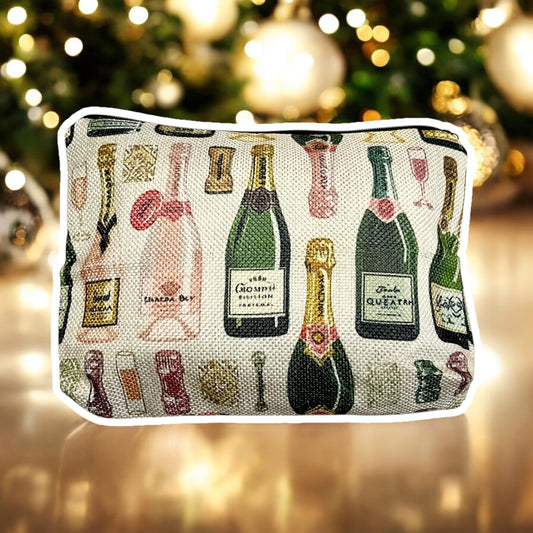 French Champagne Printed Cosmetic Pouch for New Years Eve - Versatile Clutch Makeup Bag