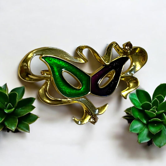 Elegant Vintage Inspired Mardi Gras Mask Brooch Pin
