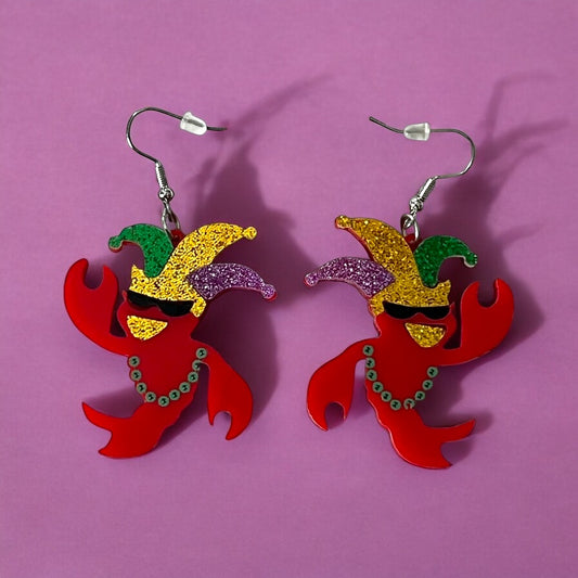 Festive Party Acrylic Crawfish Earrings! Perfect for any Carnival, Mardi Gras