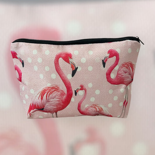 Flamingo Print Linen Makeup Bag - Lightweight Cosmetic Organizer with Zipper Closure