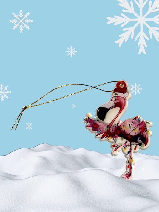 Festive Pink Flamingo Pendant Ornament - Perfect for Car, Wallet, Backpack, Keys - Christmas Decor or Gift