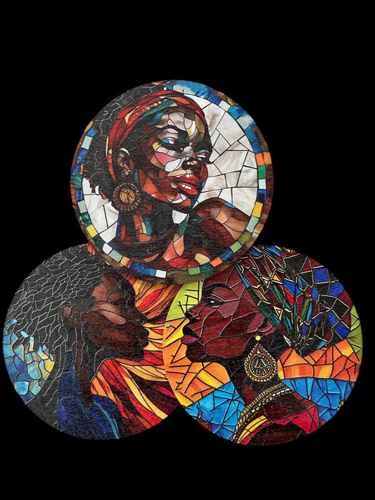 Elegant African American Women Art Wooden Coaster Set - 8 Pieces, Perfect for Drinks, Coffee & Tea