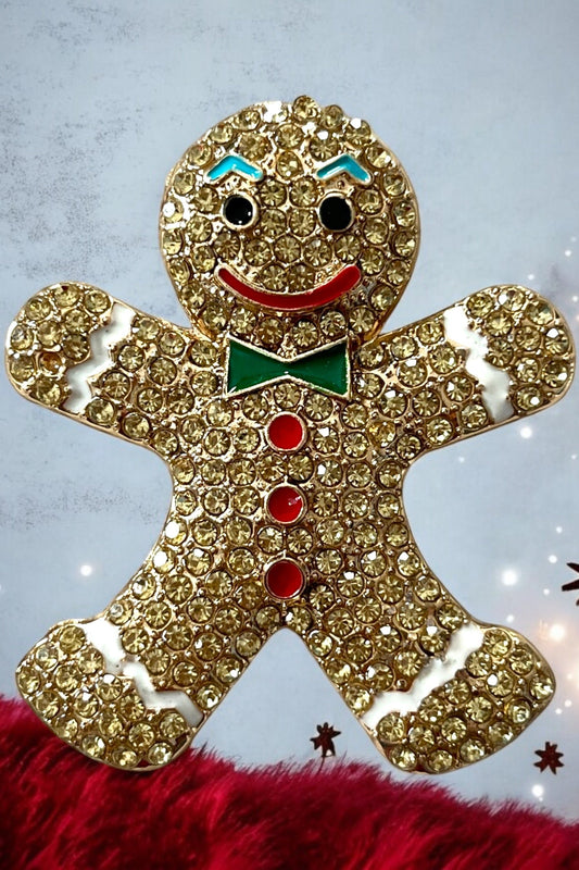 Gingerbread Man Brooch Necklace Pendant - Winter Fashion Statement Piece. Brown or Multicolor