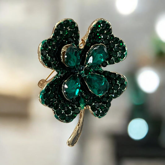 St. Patrick's Day Lucky Four-Leaf Clover Shamrock Rhinestone Brooch
