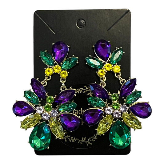 Mardi Gras Earrings, Glittery Rhinestone Party Jewelry. Size Medium or Large