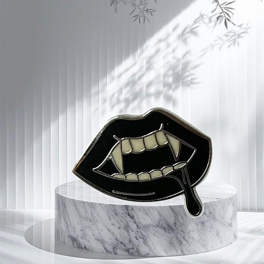 Spooky Smooches Lips with Dripping Blood Lapel Pin - Horror Anime Style Halloween Gothic Style Metal Enamel Pin