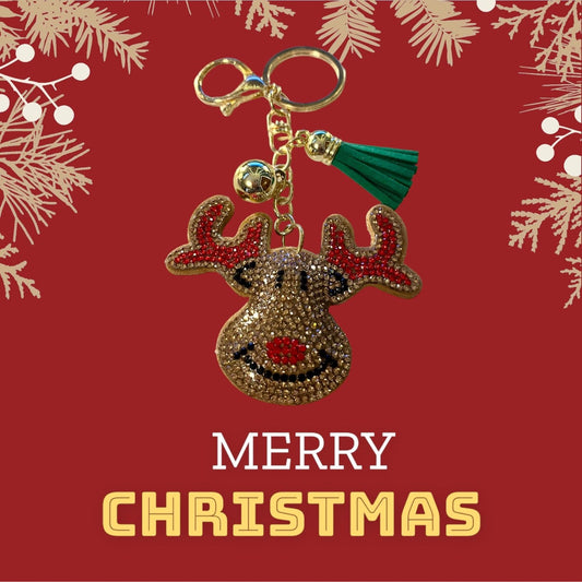 Sparkling Reindeer Keychain with Tassel - Festive Holiday Accessory - Christmas Gift Idea