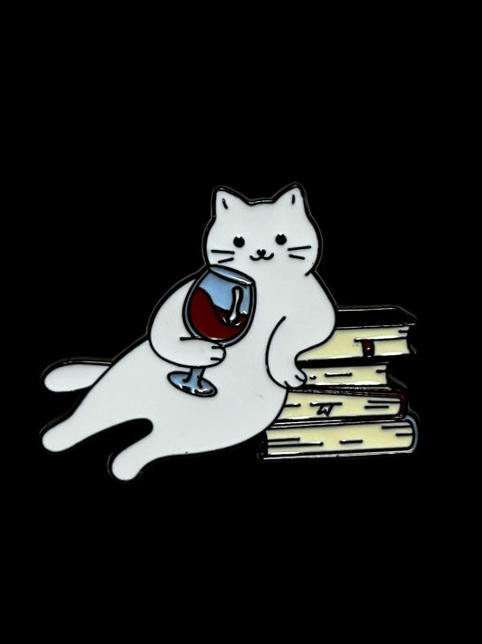 Lustige Katze mit Weinflaschenbrosche – Ausgefallene Emaille-Anstecknadel für Katzenmütter, Weinliebhaber und Fashionistas