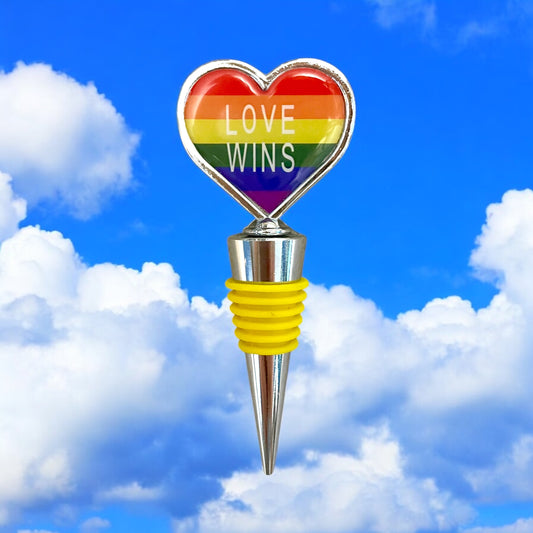 Rainbow Heart Wine Stopper with Yellow Rubber Ring – Contemporary Pride Design