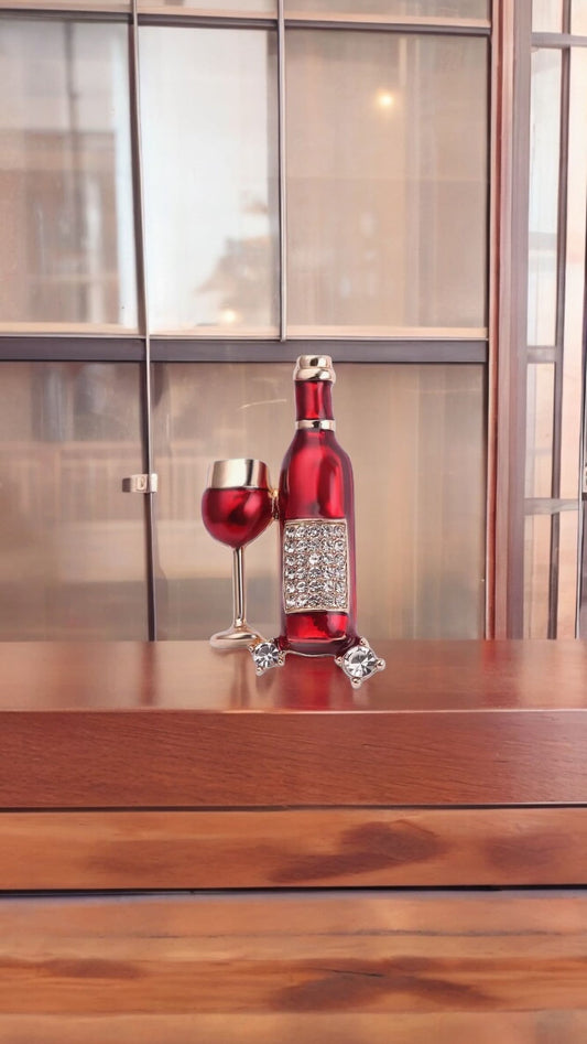 Exquisites 2-teiliges Anstecknadel-Set aus Weinflasche und Glas-Emaille