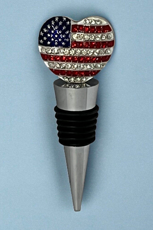 Patriotischer, mit Strasssteinen besetzter Weinverschluss in Herzform mit amerikanischer Flagge – ideal für die Feierlichkeiten zum Unabhängigkeitstag und zum 4. Juli