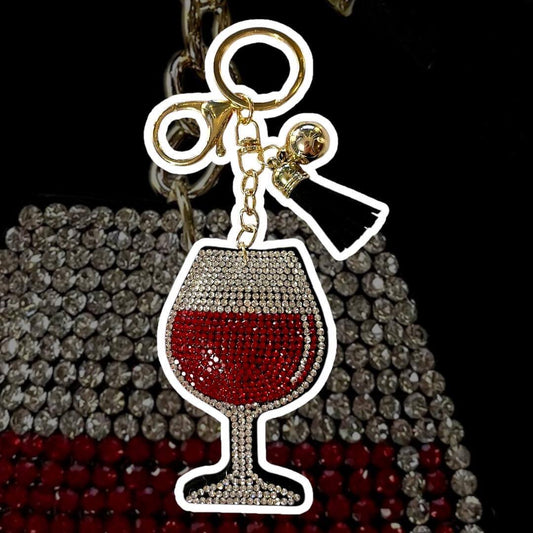 Entzückender Strass-Weinglas-Schlüsselanhänger mit Rucksack-Anhänger – Tragen Sie Ihren Weinstil